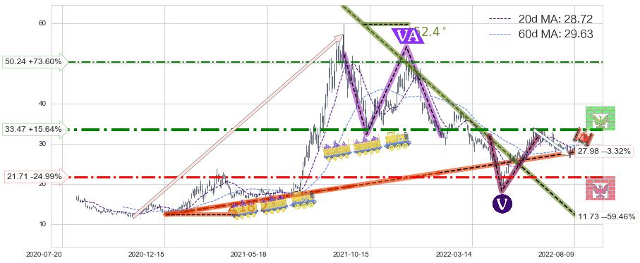 ♘ 阻力价格位33.47,可信任强度79.36%,距离最后交易2022-08-12形成的收盘价格28.94相差 +15.64%