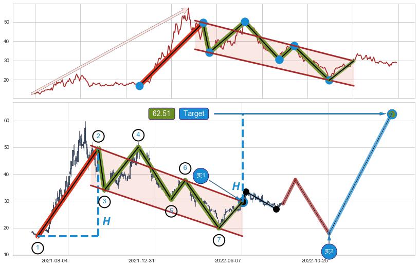 ➣ 最小中继整理涨幅→𝐇: 32.74 (𝐇旗杆的长度:旗杆起点→顶点)
