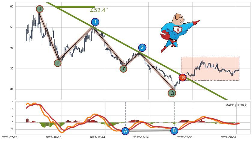 ♘ 支撑价格位21.71,可信任强度58.51%,距离最后交易2022-08-12形成的收盘价格28.94相差 -24.99%