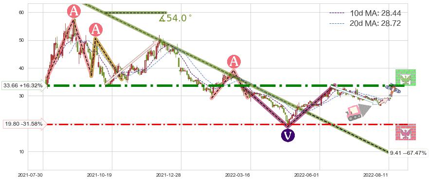 ♘ 阻力价格位33.66,可信任强度95.19%,距离最后交易2022-08-12形成的收盘价格28.94相差 +16.32%