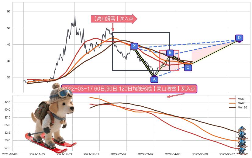 ➣ D点拟合预测价格42.69,距离最后交易收盘价格28.94相差 +47.51%