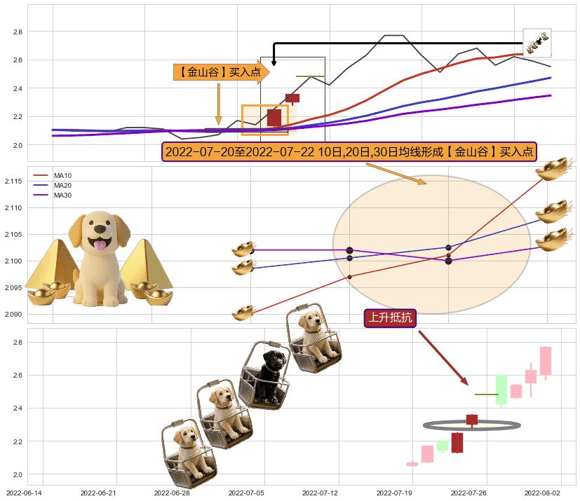 | 10 🅚:两红夹一黑 ➕ 🎢:【旱地拔葱】买入点均线组合买入点信号形成后,猜想后续向上脱离整理形态,持续突破上升 ☞ 看多信号 ⇥ 【均线】交织【🅚线】⇥ 综合量化分数: 51 | > |