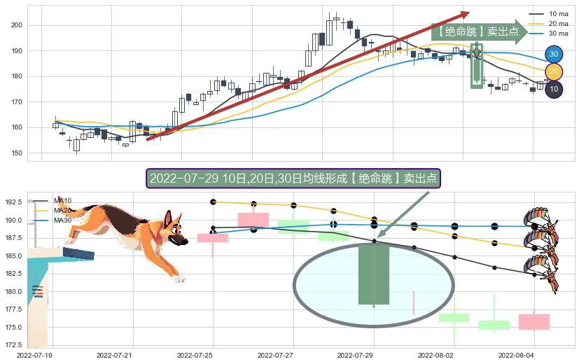 ⚀ 2022-07-29日显现 10日-20日-30日均线 【绝命跳】卖出点 看空信号,后市看跌,卖出