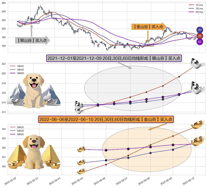 ⚃ 2022-06-07-日至2022-06-10-日显现 20日-30日-60日均线 【金山谷】买入点 其再次确认了买入信号,可靠性更强,买入