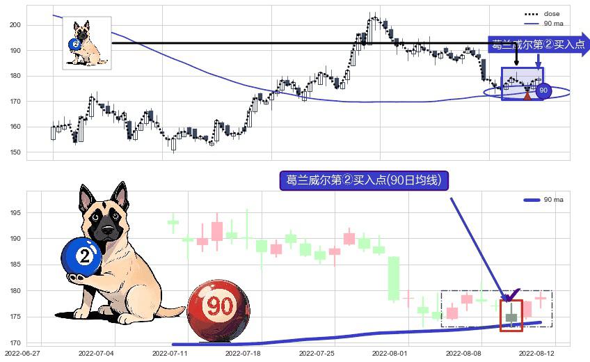 ⚀ 2022-08-10-日显现 葛兰威尔均线 90日均线 第②买入点 上升趋势的中继信号,后市看涨,买进信号
