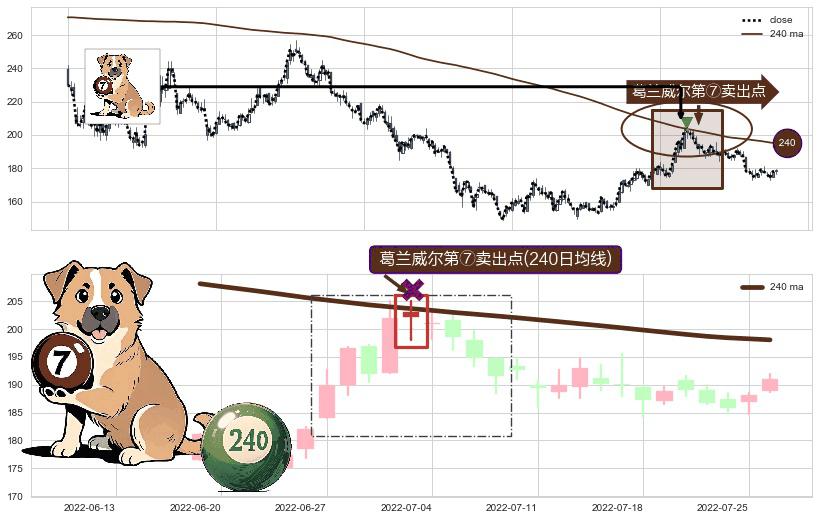 ⚀ 2022-07-01-日显现 葛兰威尔均线 240日均线 第⑦卖出点 下降趋势的中继信号,后市看跌,卖出信号