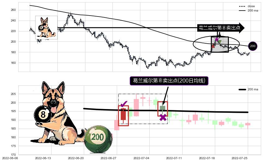 ⚀ 2022-07-06-日显现 葛兰威尔均线 200日均线 第⑧卖出点 下降趋势的中继信号,后市看跌,卖出信号