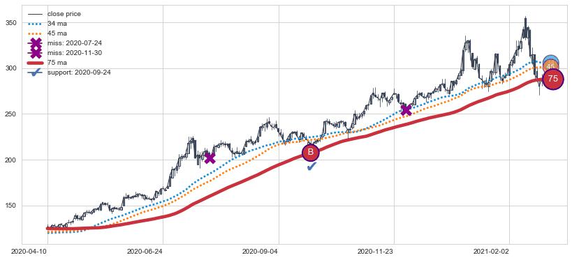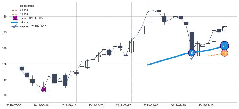 ⚄ 价格在均线获取支撑后再次向上反弹了【极短】距离, 第②买入点 支撑效果【等待验证】