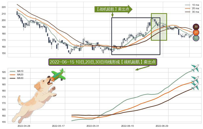 ⚀ 2022-05-19日-2022-07-08日显现 10日-20日-30日均线 【战机起航】卖出点 看空信号,后市看跌,卖出