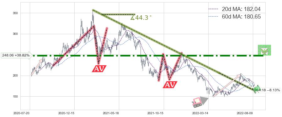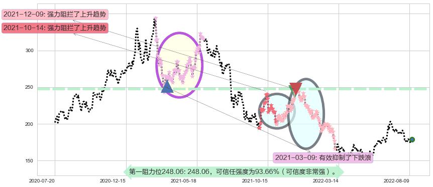 ♘ 阻力价格位248.06,可信任强度93.66%,距离最后交易2022-08-12形成的收盘价格178.70相差 +38.82%