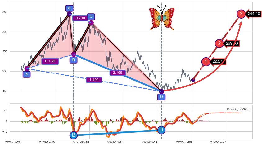 ➣ 已完成【蝴蝶】形态起点X: 2020-08-12, 终点D: 2022-03-29, 共395交易日