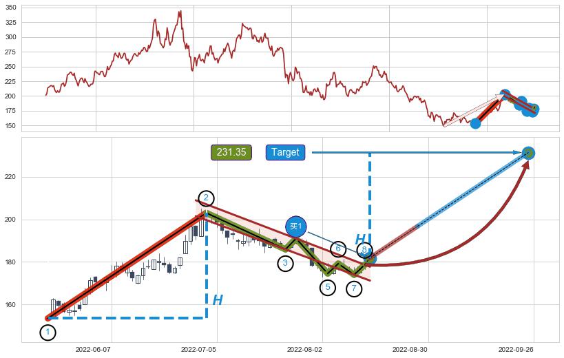 ➢ AI预测: 假定反转如期而至,第❶价格目标位置(2022-10-05, 223.75)