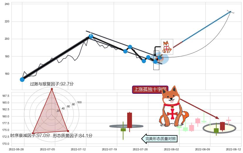 | 11 🅚:上涨孤独十字星 ➕ 🎢:【蛟龙出海】买入点均线组合买入点信号形成后,猜想后续阻力突破,后市持续上涨 ☞ 看多信号 ⇥ 【均线】交织【🅚线】⇥ 综合量化分数: 51 | > |