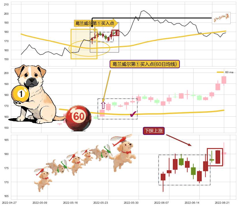 ➣ 收盘价(2022-03-22: 164.30 )→回踩→第一根k线高点(2022-03-16: 165.55 )