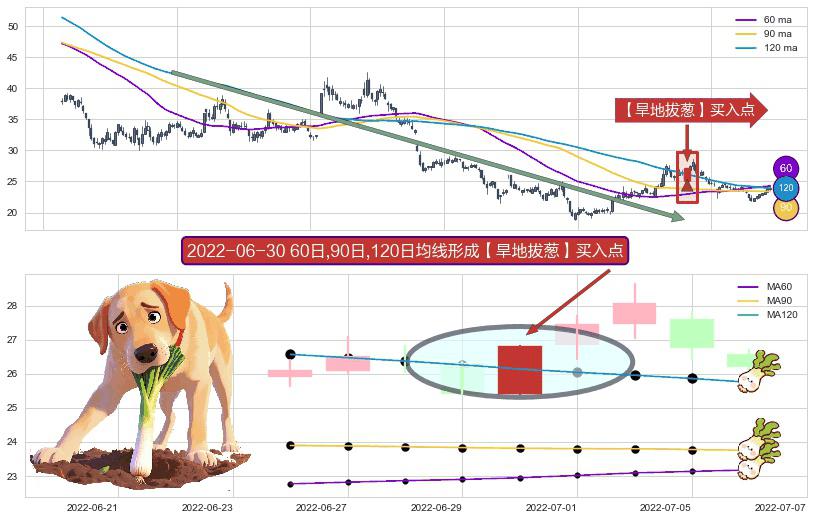 形态多维评估: ⚀ 2022-06-30日显现 60日-90日-120日均线 【旱地拔葱】买入点 看多信号,后市看涨,买入