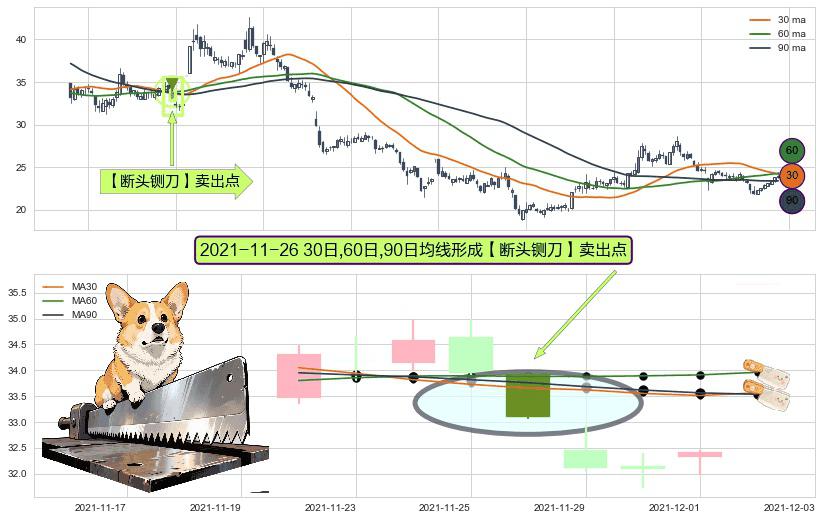 形态多维评估: ⚀ 2021-11-26日显现 30日-60日-90日均线 【断头铡刀】卖出点 看空信号,后市看跌,卖出