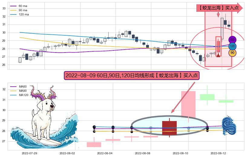 形态多维评估: ⚀ 2022-08-09日显现 60日-90日-120日均线 【蛟龙出海】买入点 看多信号,后市看涨,买入