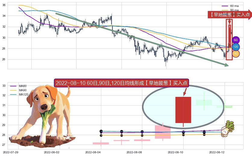 形态多维评估: ⚀ 2022-08-10日显现 60日-90日-120日均线 【旱地拔葱】买入点 看多信号,后市看涨,买入