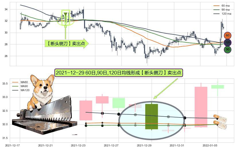 形态多维评估: ⚀ 2021-12-29日显现 60日-90日-120日均线 【断头铡刀】卖出点 看空信号,后市看跌,卖出