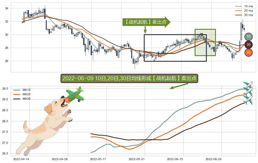 形态多维评估: ⚀ 2022-05-11日-2022-07-07日显现 10日-20日-30日均线 【战机起航】卖出点 看空信号,后市看跌,卖出