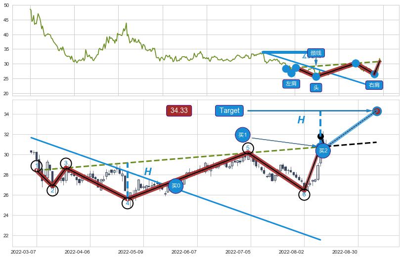 ➣ 【已确认突破】头肩底 起点:2022-01-21,突破点:2022-08-10,形态共133交易日