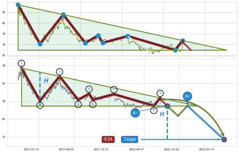 ➢ AI预测: 假定反转启动后, 第❷目标位置(2023-03-09, 28.93)