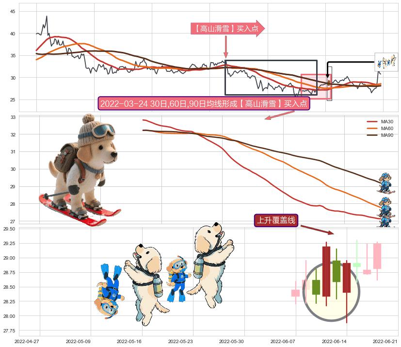| 4 🅚:冉冉上升|稳步上涨 ➕ 🎢:【高山滑雪】买入点均线组合买入点信号形成后,猜想后续下行结束,持续反弹上涨(均值回复) ☞ 看多信号 ⇥ 【均线】交织【🅚线】⇥ 综合量化分数: 56 | > |