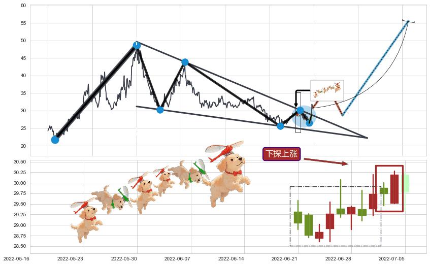 ➣ AI预测: 假定反转启动后, 第❶目标位置(2023-02-10, 30.99)