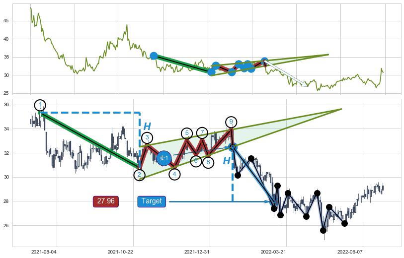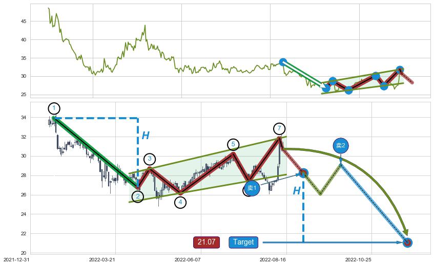 ➣ 最小中继整理跌幅→𝐇: 7.16 (𝐇旗杆的长度:旗杆起点→顶点)