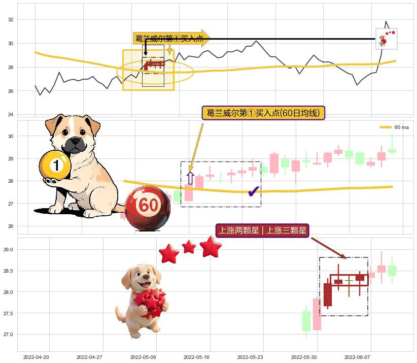 | 3 🅚:冉冉上升|稳步上涨 ➕ 🎢:葛兰威尔第①买入点买入点信号形成后,猜想后续下跌趋势反转上涨趋势(均值回复) ☞ 看多信号 ⇥ 【均线】交织【🅚线】⇥ 综合量化分数: 54 | > |