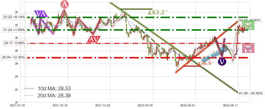 ➢ 2022-08-09到达第❶价格目标位置28.94