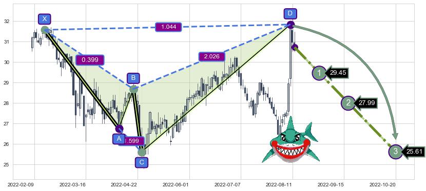 ➣ 已完成【鲨鱼】形态起点X: 2022-02-16, 终点D: 2022-08-10, 共120交易日