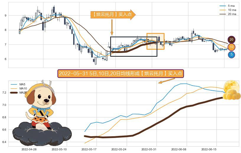 ⚀ 2022-05-13日-2022-06-17日显现 5日-10日-20日均线 【烘云托月】买入点 看多信号,后市看涨,买入