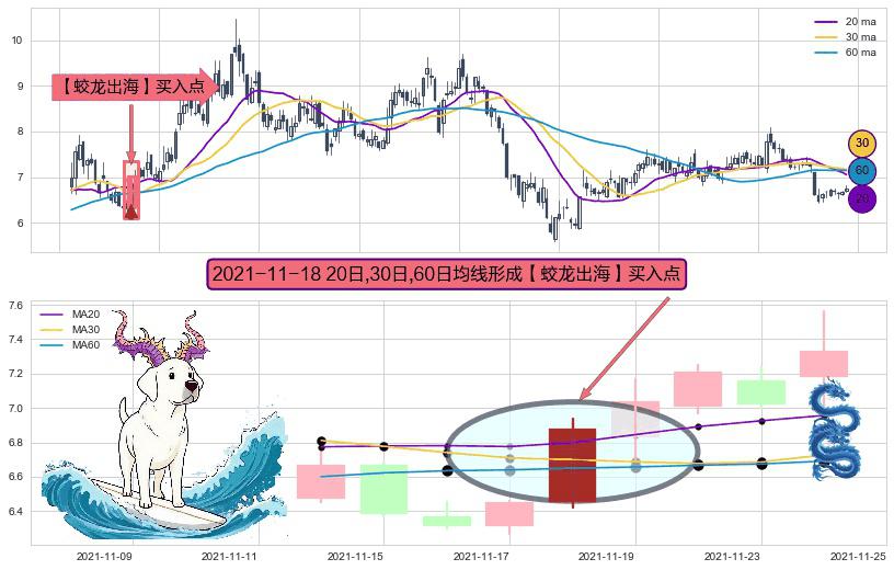⚀ 2021-11-18日显现 20日-30日-60日均线 【蛟龙出海】买入点 看多信号,后市看涨,买入