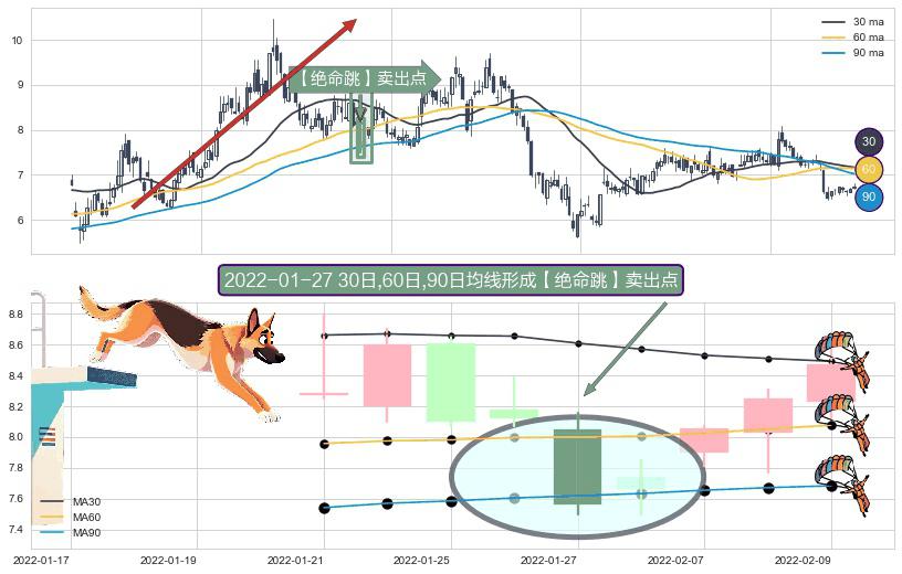 ⚀ 2022-01-27日显现 30日-60日-90日均线 【绝命跳】卖出点 看空信号,后市看跌,卖出