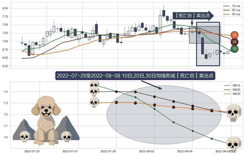 ⚀ 2022-08-01-日至2022-08-08-日显现 10日-20日-30日均线 【死亡谷】卖出点 看空信号,后市看跌,卖出