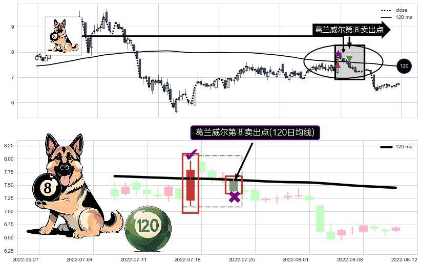 ⚀ 2022-07-21-日显现 葛兰威尔均线 120日均线 第⑧卖出点 下降趋势的中继信号,后市看跌,卖出信号