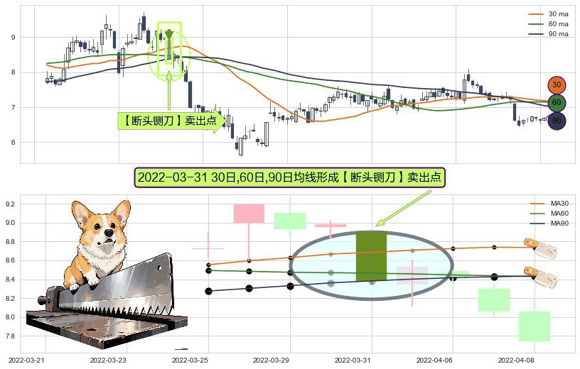 ⚀ 2022-03-31日显现 30日-60日-90日均线 【断头铡刀】卖出点 看空信号,后市看跌,卖出