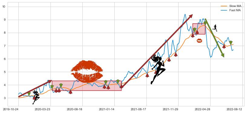2022-04-06至2022-07-04 慢线与快线呈空头排列, 慢线与快线接触少,无缠绕