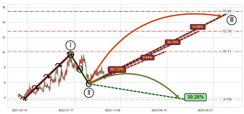 ♘ 支撑价格位3.902,可信任强度93.95%,距离最后交易2022-08-12形成的收盘价格6.75相差 -42.19%