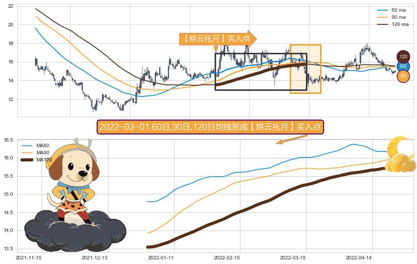 形态多维评估: ⚀ 2021-12-29日-2022-04-25日显现 60日-90日-120日均线 【烘云托月】买入点 看多信号,后市看涨,买入