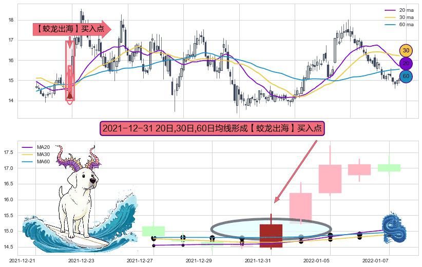 形态多维评估: ⚀ 2021-12-31日显现 20日-30日-60日均线 【蛟龙出海】买入点 看多信号,后市看涨,买入
