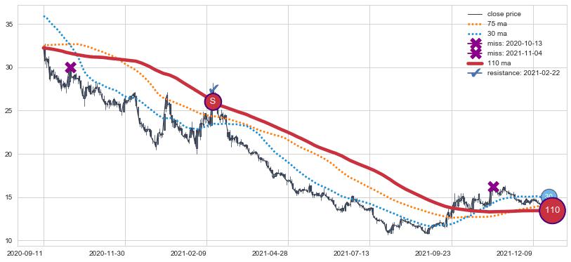 下跌趋势2020-09-11-2021-12-16,均线110确认关键阻力1处