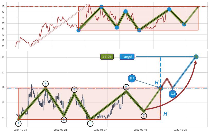 ➣ 最小中继整理涨幅→𝐇: 7.58 (𝐇旗杆的长度:旗杆起点→顶点)