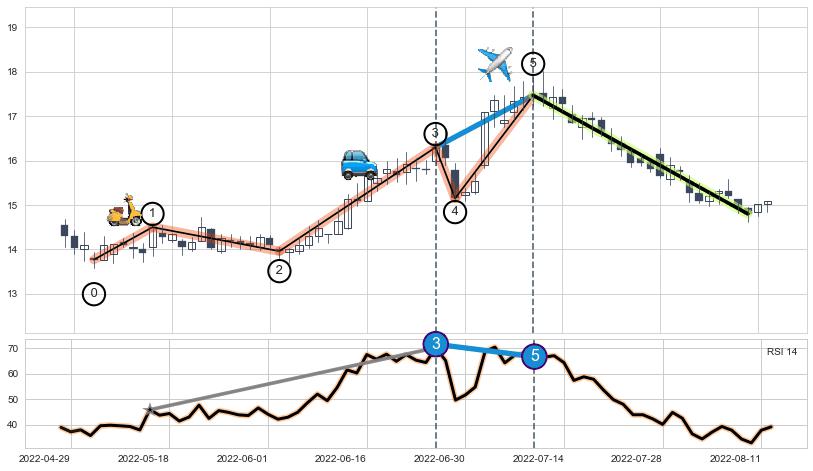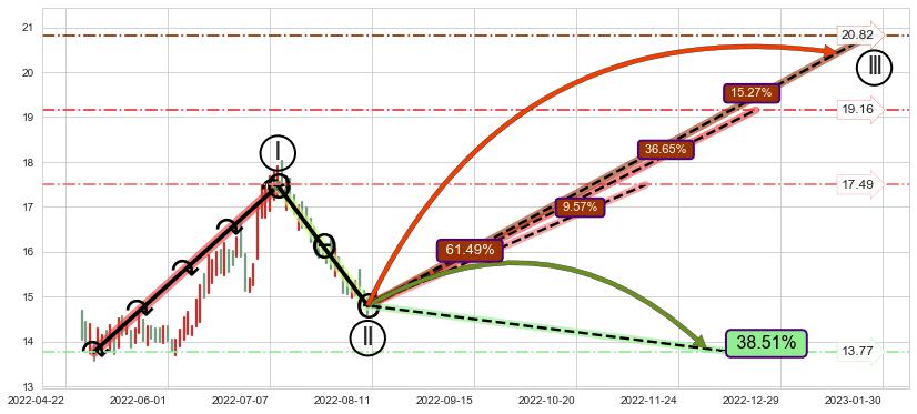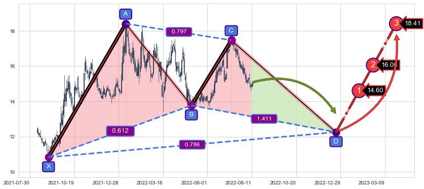 ➣ AI预测: 假定反转启动后, 第❶目标位置(2023-01-27, 14.60)