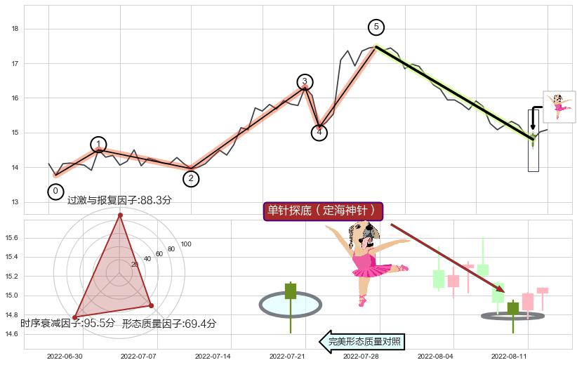 ♘ 支撑价格位13.97,可信任强度93.34%,距离最后交易2022-08-12形成的收盘价格15.08相差 -7.37%