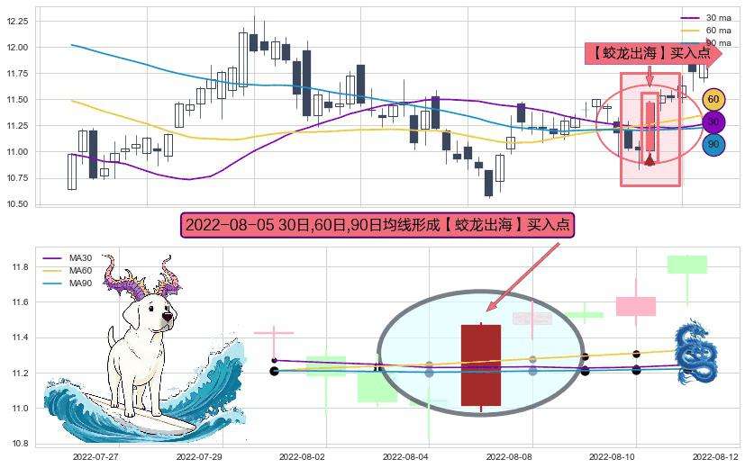 形态多维评估: ⚀ 2022-08-05日显现 30日-60日-90日均线 【蛟龙出海】买入点 看多信号,后市看涨,买入