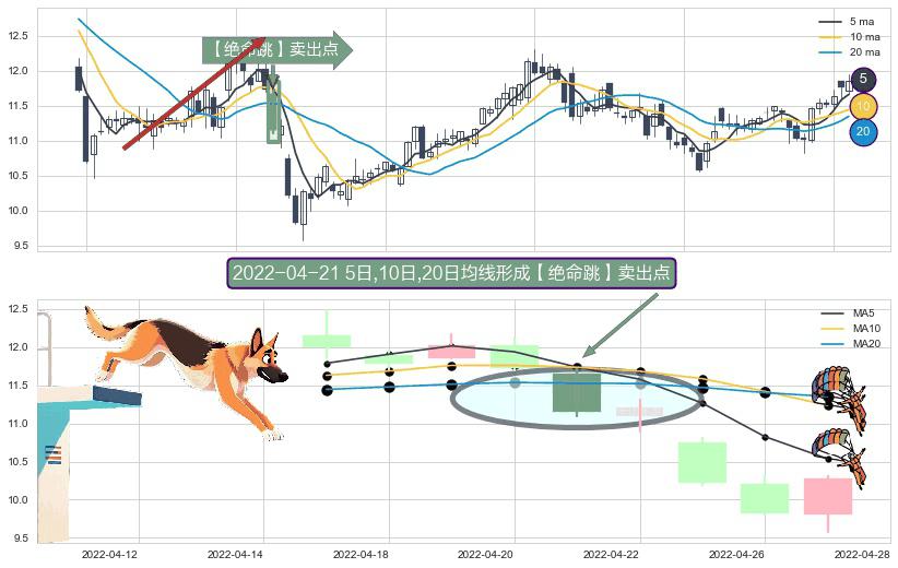 形态多维评估: ⚀ 2022-04-21日显现 5日-10日-20日均线 【绝命跳】卖出点 看空信号,后市看跌,卖出