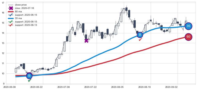 上涨趋势2020-06-08-2020-09-07,均线35, 60确认关键支撑2处