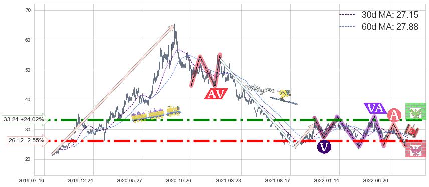 ♘ 阻力价格位33.24,可信任强度89.51%,距离最后交易2022-08-12形成的收盘价格26.80相差 +24.02%